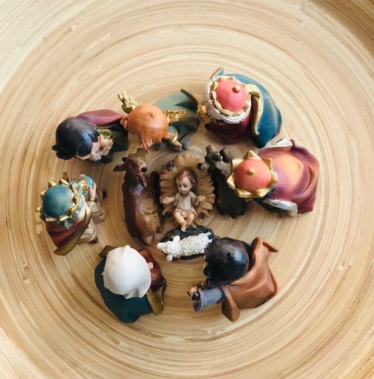 I showed him the figurines for the Nativity scene and invited him to arrange them while telling the story behind Christmas.