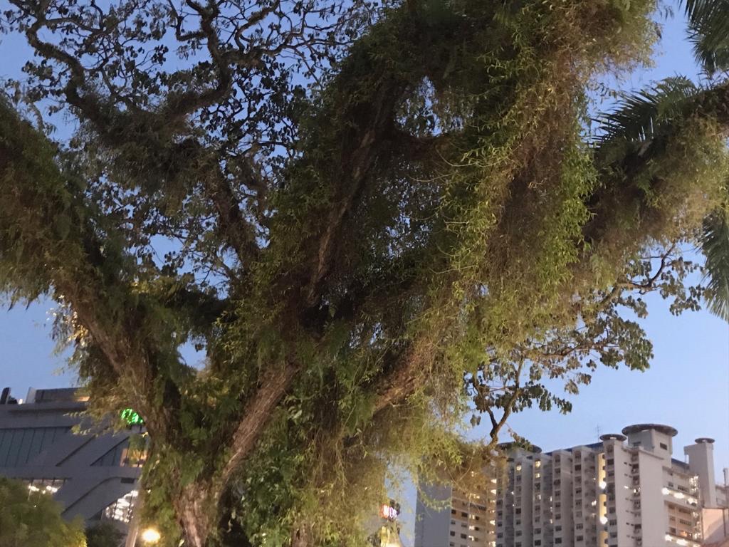 Then we walked down the street lined with old trees where Sharonne took pictures of wild orchids hanging from the branches to show her husband.