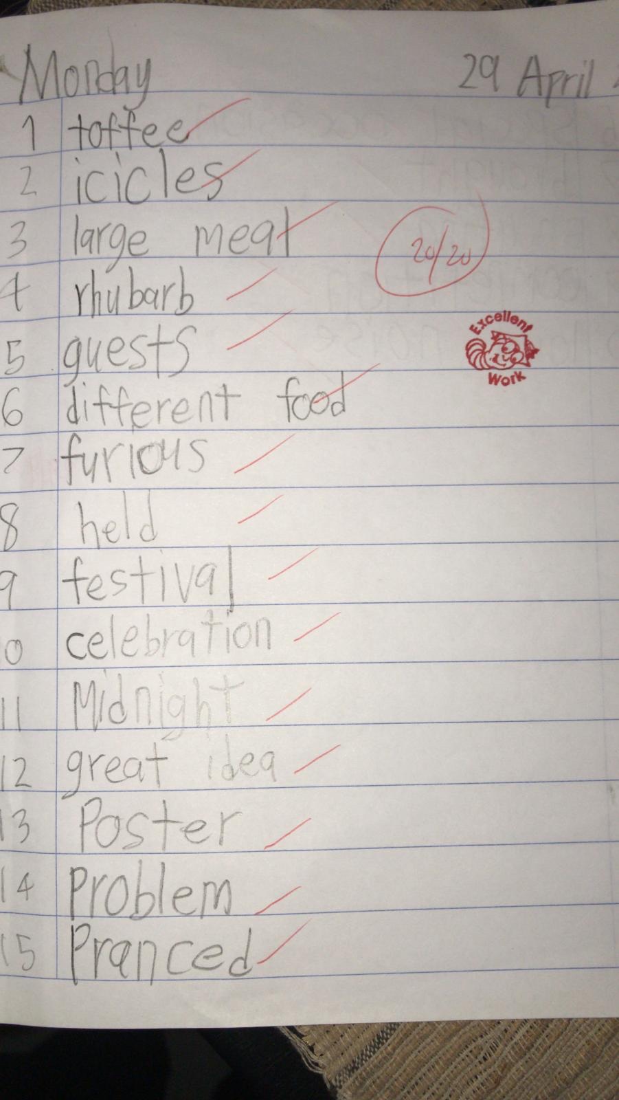 He asked for the use of the cell phone to set the timer to revise his spelling, and later on chuckled with glee that he had cleared his revision sooner than he thought.
