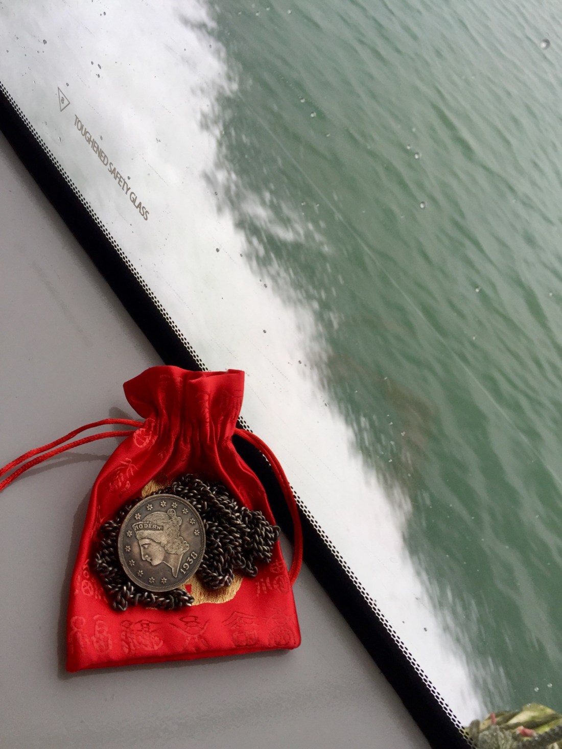 As the ferry departed for Shuitou Harbour in Kinmen, I placed her possession by the window of the boat & showed her the waves that she rode on nearly 100 years ago.