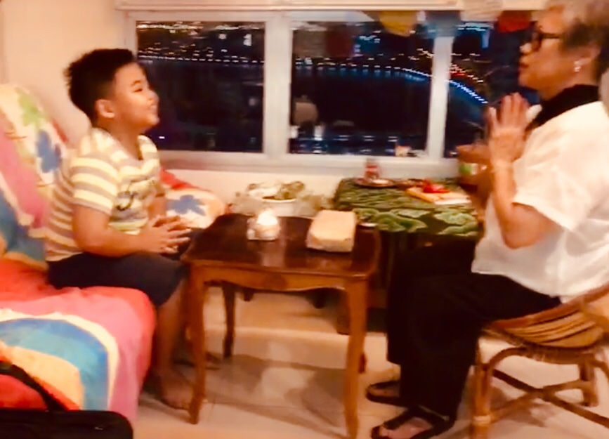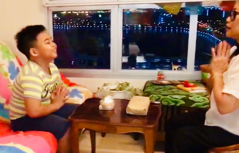 He happily sang for himself with me joining in midway while his Tok Jai filmed the historic moment. When I invited him to make his birthday wishes, he did so earnestly.