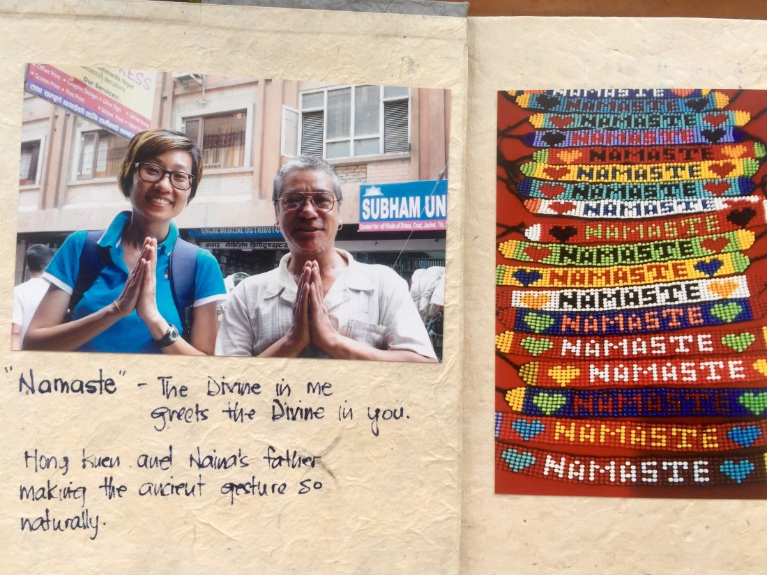 I took out my scrap book made from Nepalese handmade Lokta papers. Each page contained photos and writings of my Nepal visit in 2013.