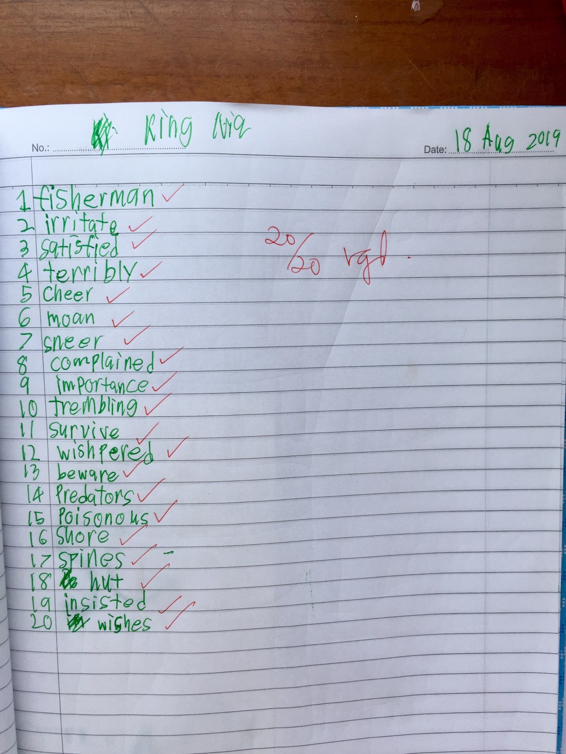 Then without needing to be reminded, he turned to a new page and numbered 1-20 on the margin to get ready for spelling, the final task of our Sunday ritual.
