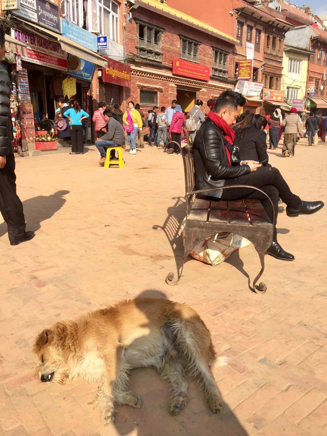 At the Boudha Stupa, the snagged tooth dog toasting in the sun as he marinades in mantras offered by thousands of pilgrims on a daily basis adds another layer to our understanding of survival, power and position.