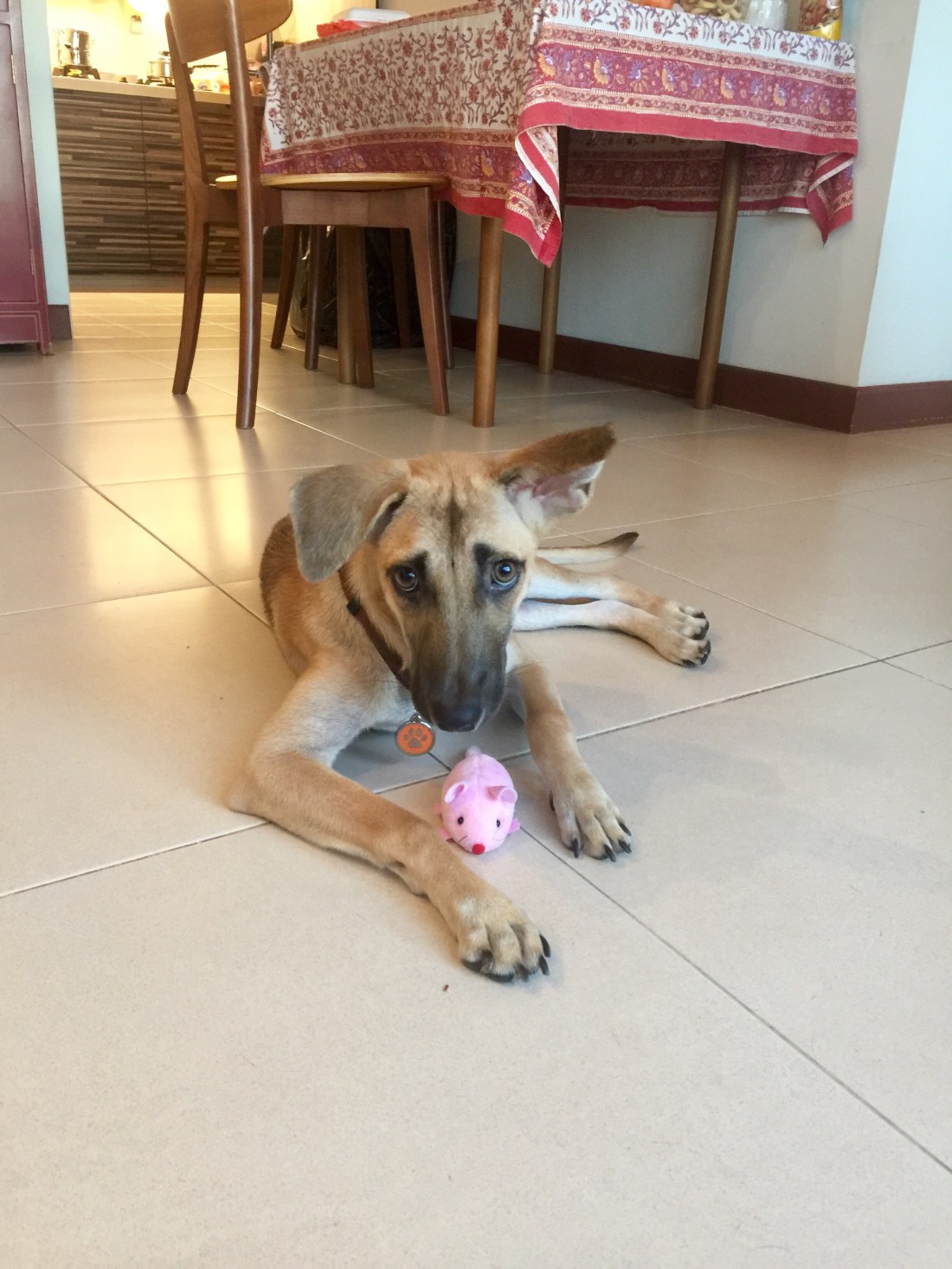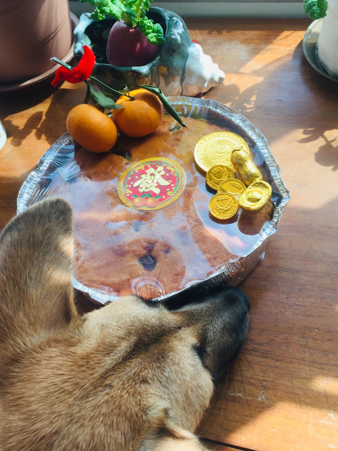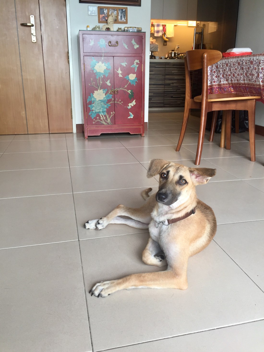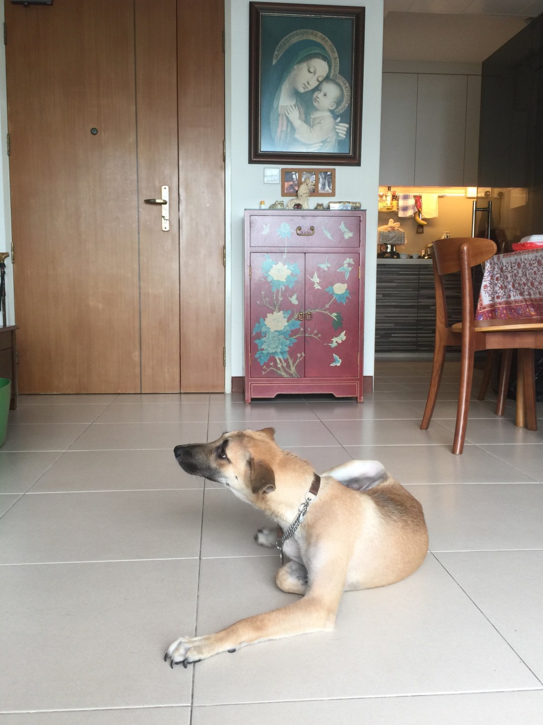 My friend brought her adopted dog to my home for Chinese New Year visit today.
