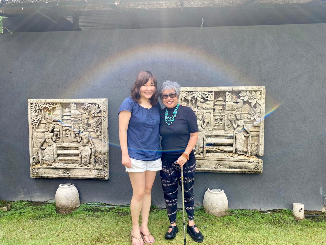 We took pictures with the balinese stone carvings of dancers and frangipani, and the Rainbow showed up to join us. Of course there are scientific and technical explanation for its appearance in the photos. But we were thrilled with the unexpectedness of it all, as if we had been bestowed some divine blessings even as we were simply having fun.