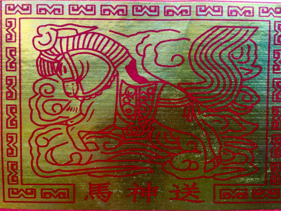 During the lunar new year a month ago I was intrigued by the gold & red offering papers for invoking spirit horses to send gods on journeys. I bought some just for fun.