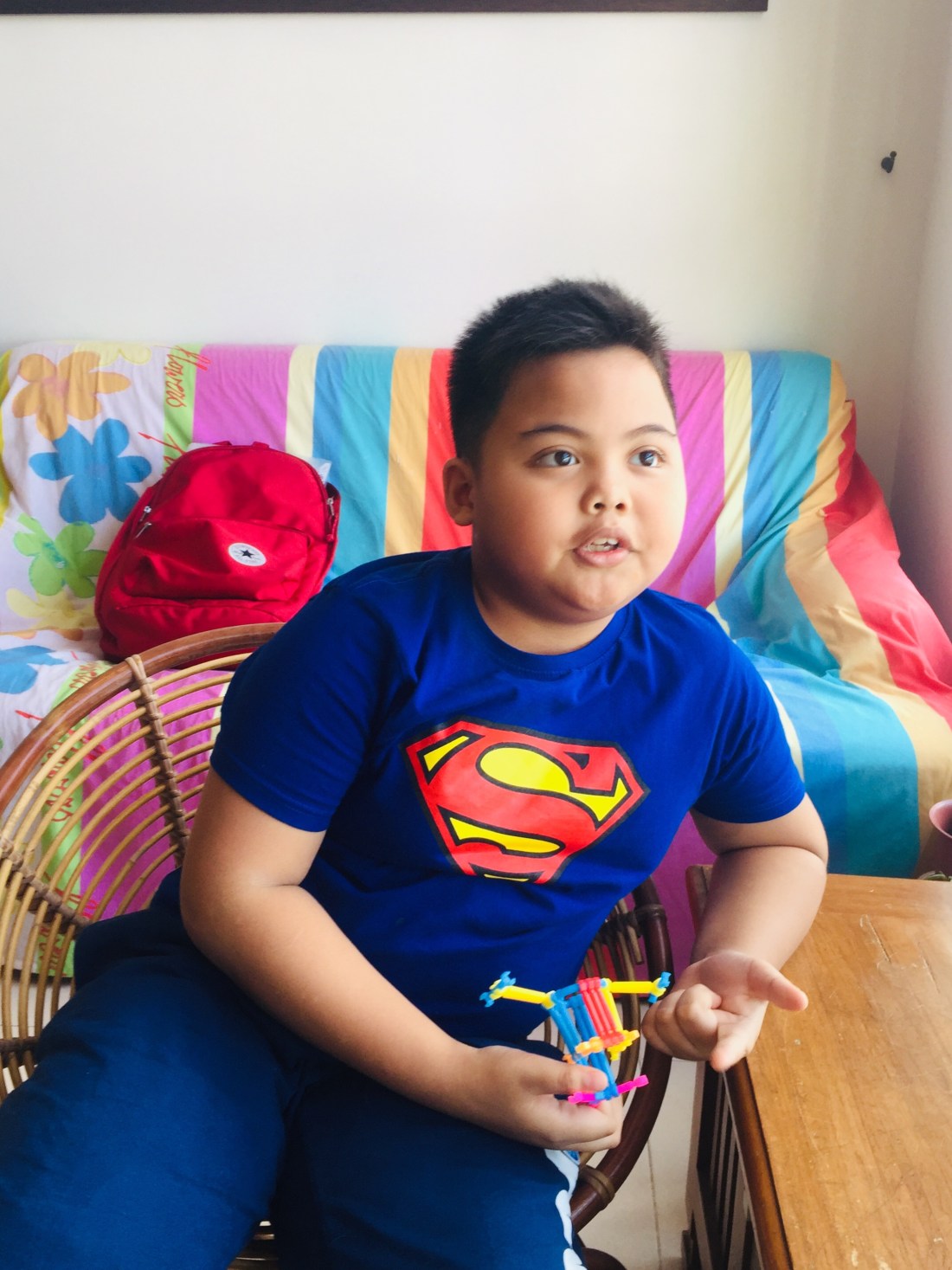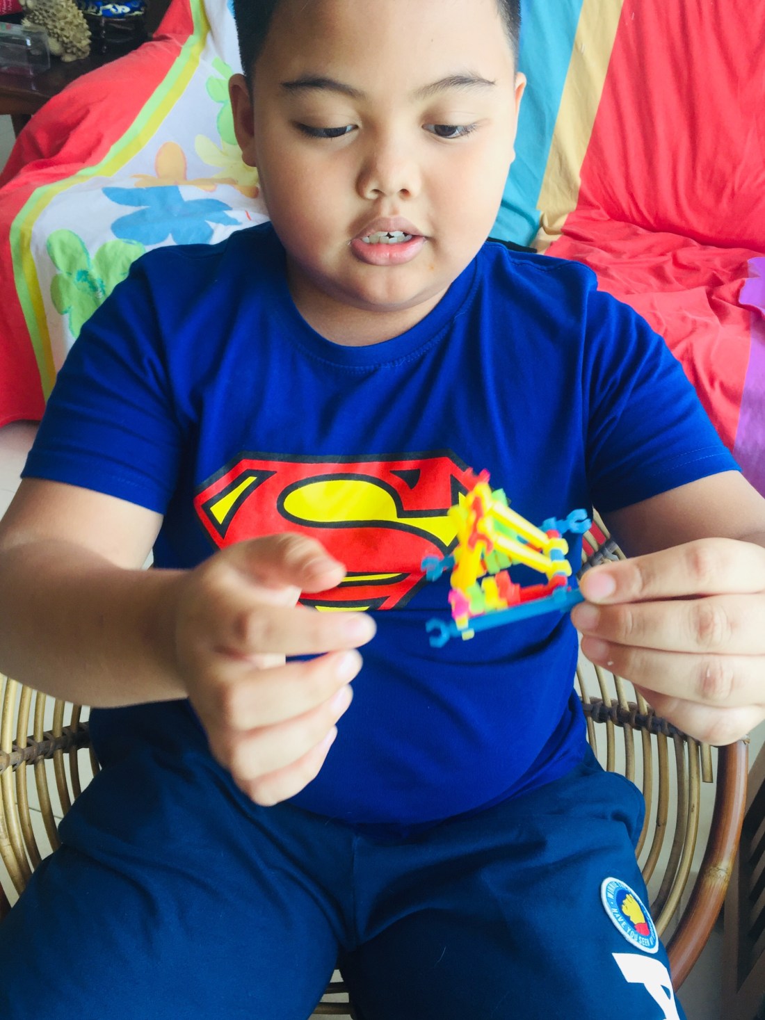 With those little plastic pieces, he created a series of objects for me: a camera with lens, a hover-board and a tent for outdoor camping which also doubled up as a land vehicle and boat when necessary.