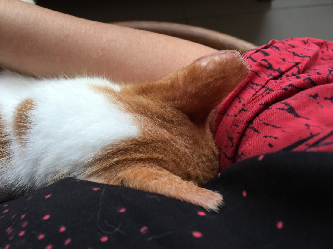 When the old cat draws her breath, after her blocked nose is cleaned with a freshly wrung warm towel;