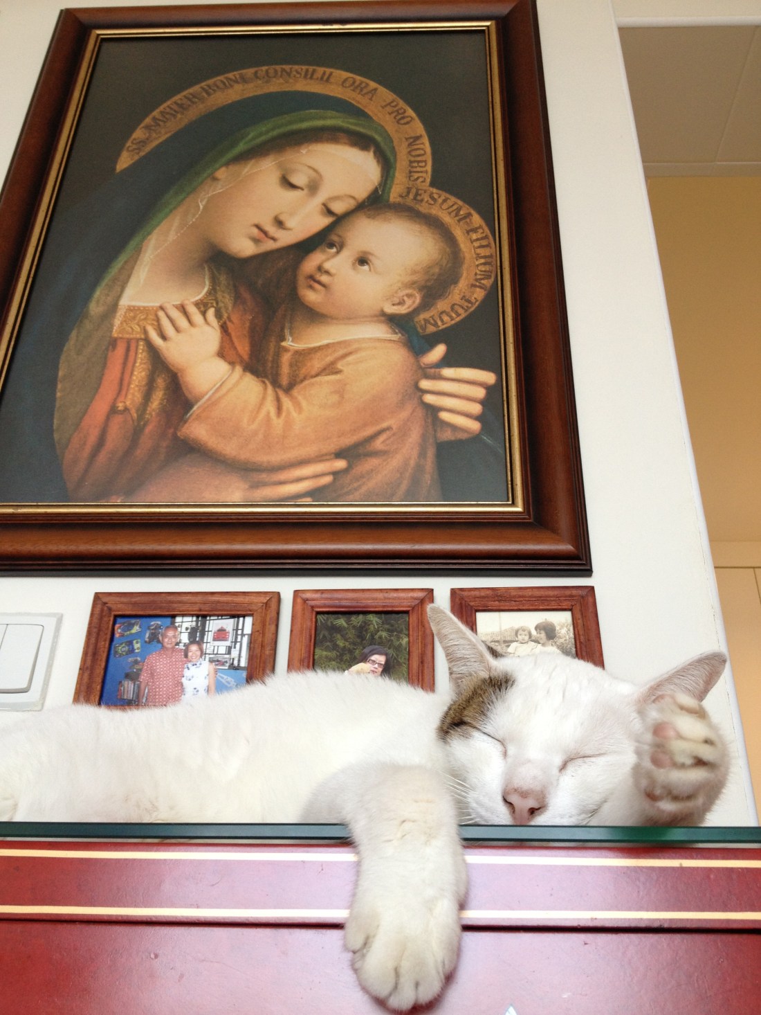 The kids on zoom saw the painting of the Madonna behind me as I adjusted my notebook.