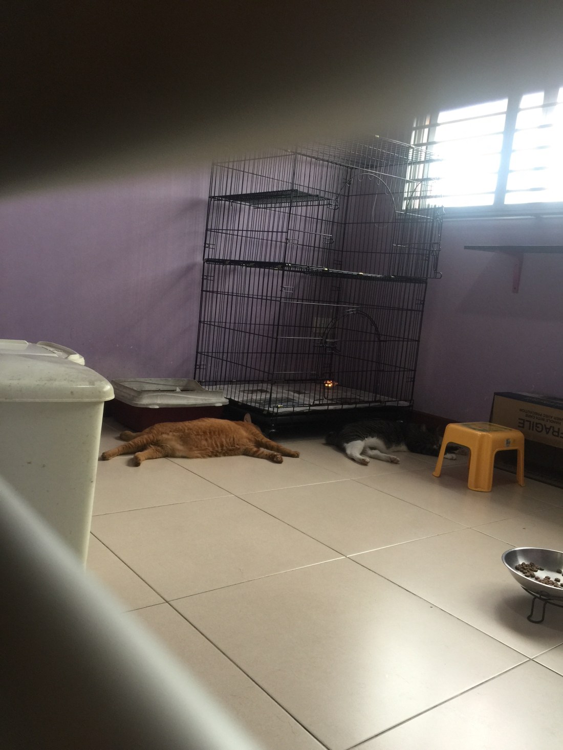 After he had 3 sips of honey water I carried him back to his favourite corner on the floor. I had wished he would sleep in the cat cage where it was cosy and clean. But I respected his will. To shield his bony body from the cold ceramic floor, I put a cotton shirt on him.