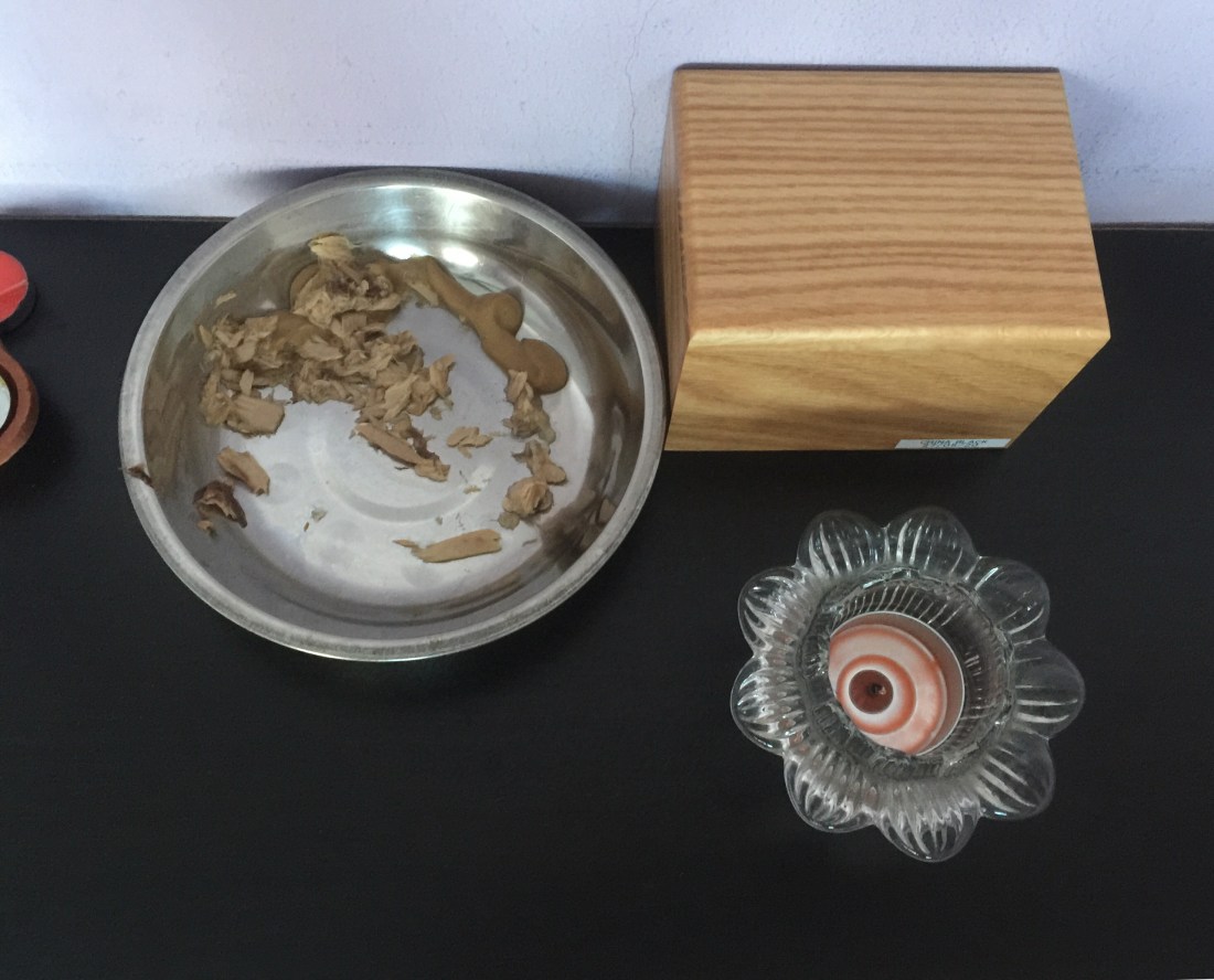 So I lit a butter lamp to light China Black’s path. Then I decided to place a dish of his favourite food next to his ashes to assure him that he’s healed and all’s well in his home, and most of all, he’s free to move on.