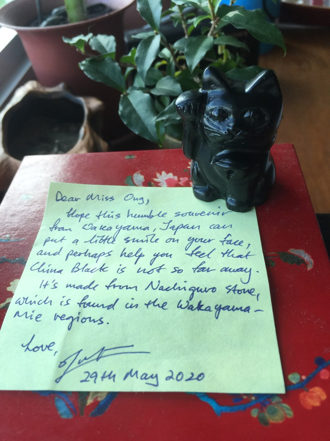 After the cremation on 27 May, China Black’s ashes were held in a little box on the shelf he used to sit on during his youth.