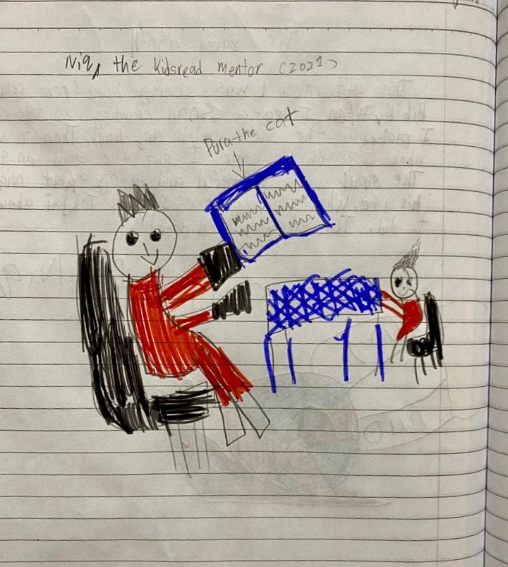 First Tutee visualises his Reading Mentor role with his future reading mentee, whom he has named Irfan.