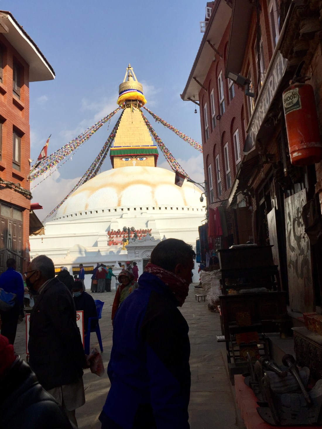 I think the stupa at Boudha in Kathmandu, Nepal, is probably the largest on the planet. Walking around it can cultivate wisdom and compassion. The stupa that needed cleaning today was about half my height.