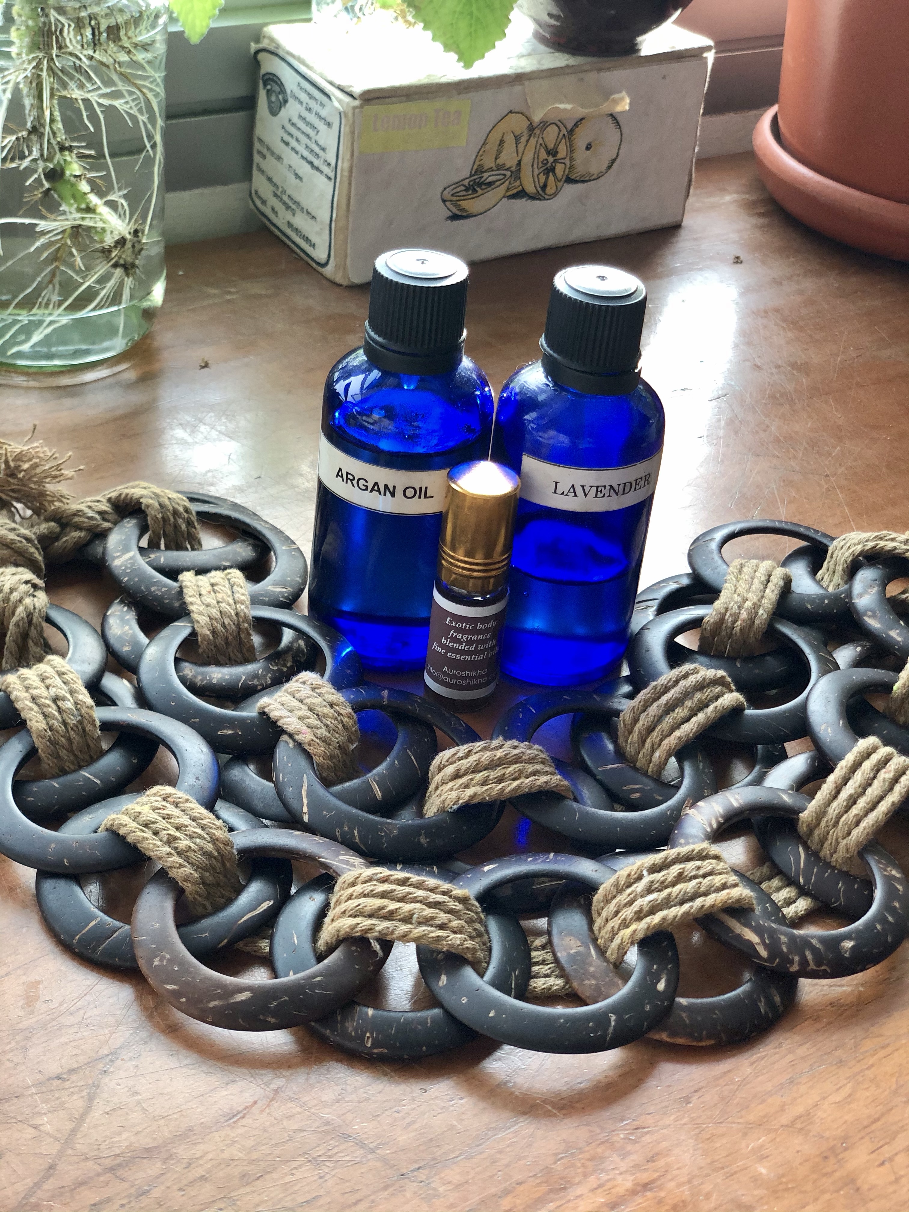 Flamenco music was playing softly in the background as I prepared the oil mixture of Moroccan argan oil with a dash of French lavender and Indian Patchouli. When I swept the oil mixture over the cracks and roughness of the necklace with my fingers, aromas wafted in the air and filled up my senses.