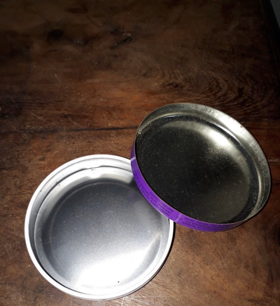 Once in my childish impatience to shut the tin, I closed the cover on my fingers instead. Blood gushed and dripped freely where metal met flesh.