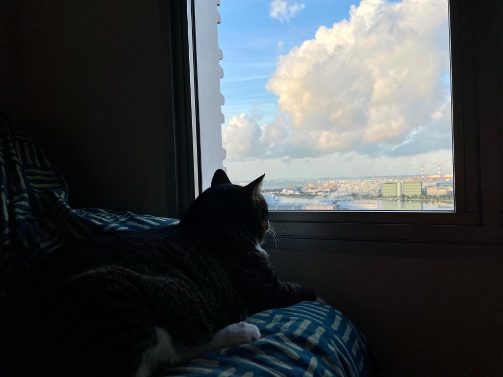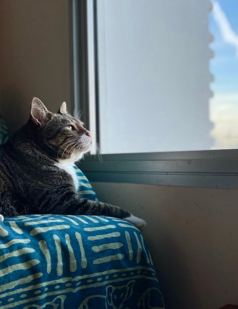 Day after day, Emmanuel the Cat lives the new dawn by the way he looks at the sky as if he’s seeing it for the first time.