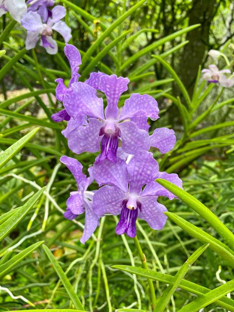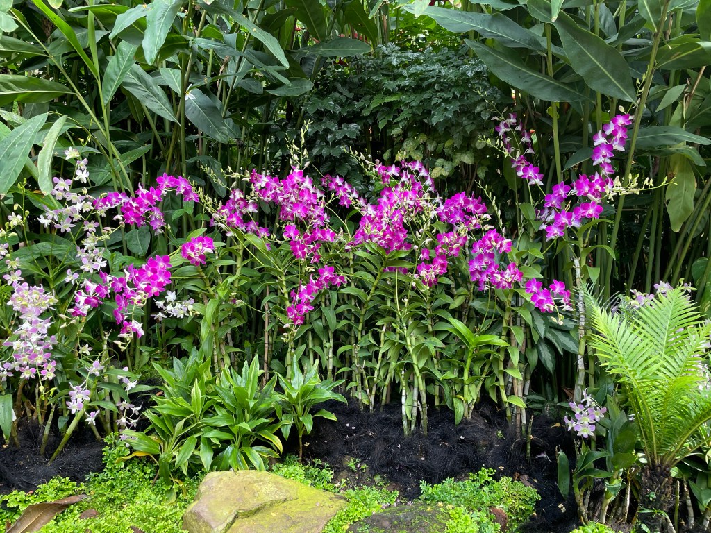 We were on our way out of the orchid gardens when we met. From a distance she looked like a pink blob.