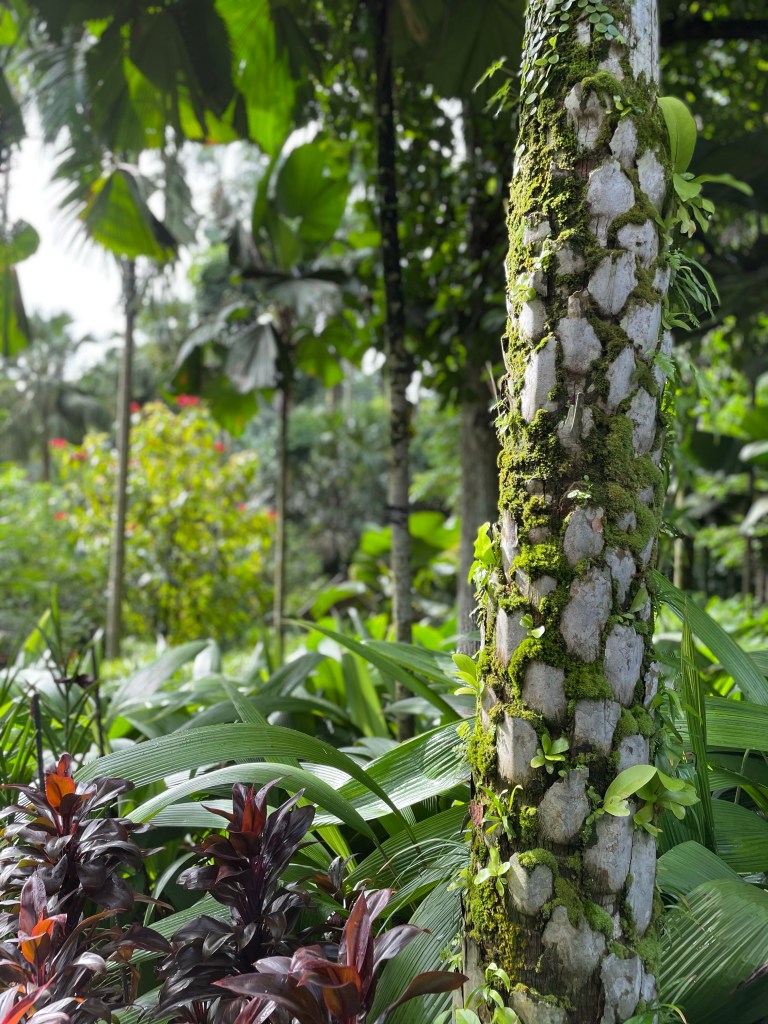 But upclose, she was fully coordinated spotting a face mask and comfortable cotton frock of bandung pink while her thick silvery hair was held in a neat bun by a pair of pink tiger lilies clasp. A circular brooch of antique gold resembling a Flower of Life caught the morning sun and sparkled attractively atop her shoulder.