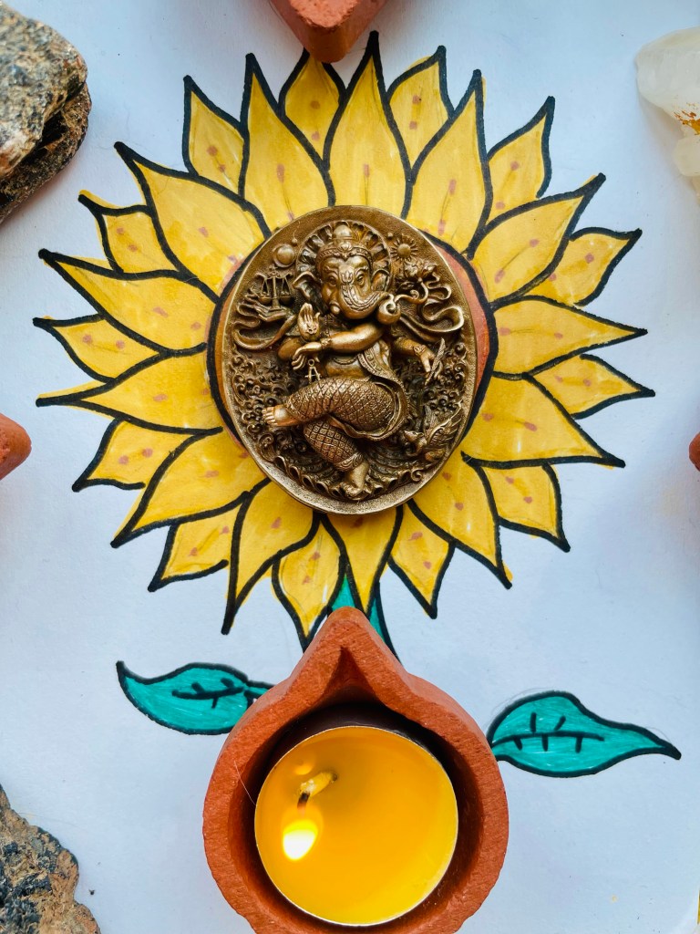 And while wondering how I could mark the occasion without leaving home, a dancing Ganesh pendant from my brother given a year ago and a recent hand drawn sunflower from a student combined to fulfil my intention.