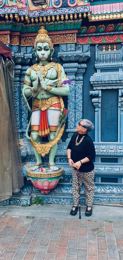 I couldn’t resist having pictures taken with Hanuman and Garuda no matter how many times I had seen them. They are ageless, but I’m not.