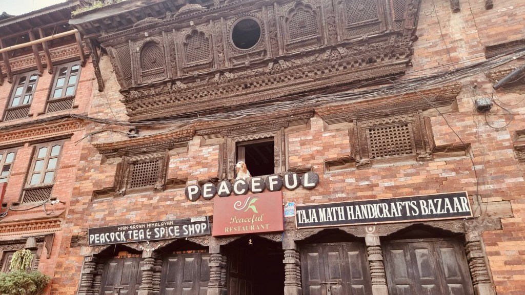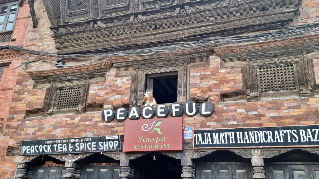 And this morning she had to step out of their guest house just in time to snap a picture of a dog contemplating the world from his/ her window in the ancient city of Bhaktapur.