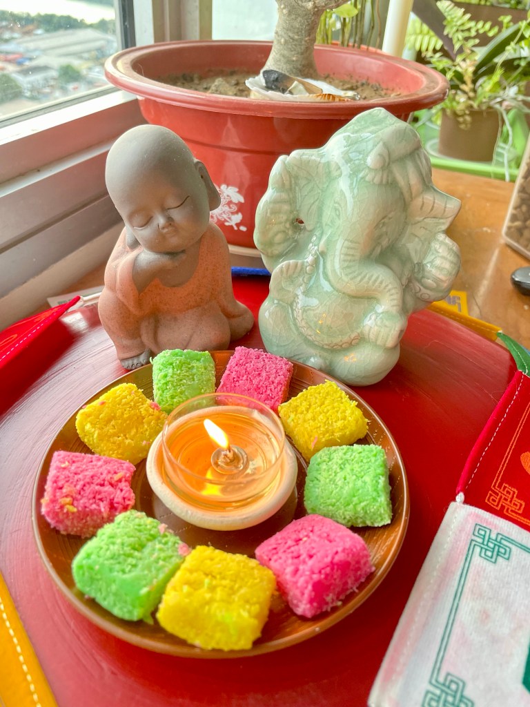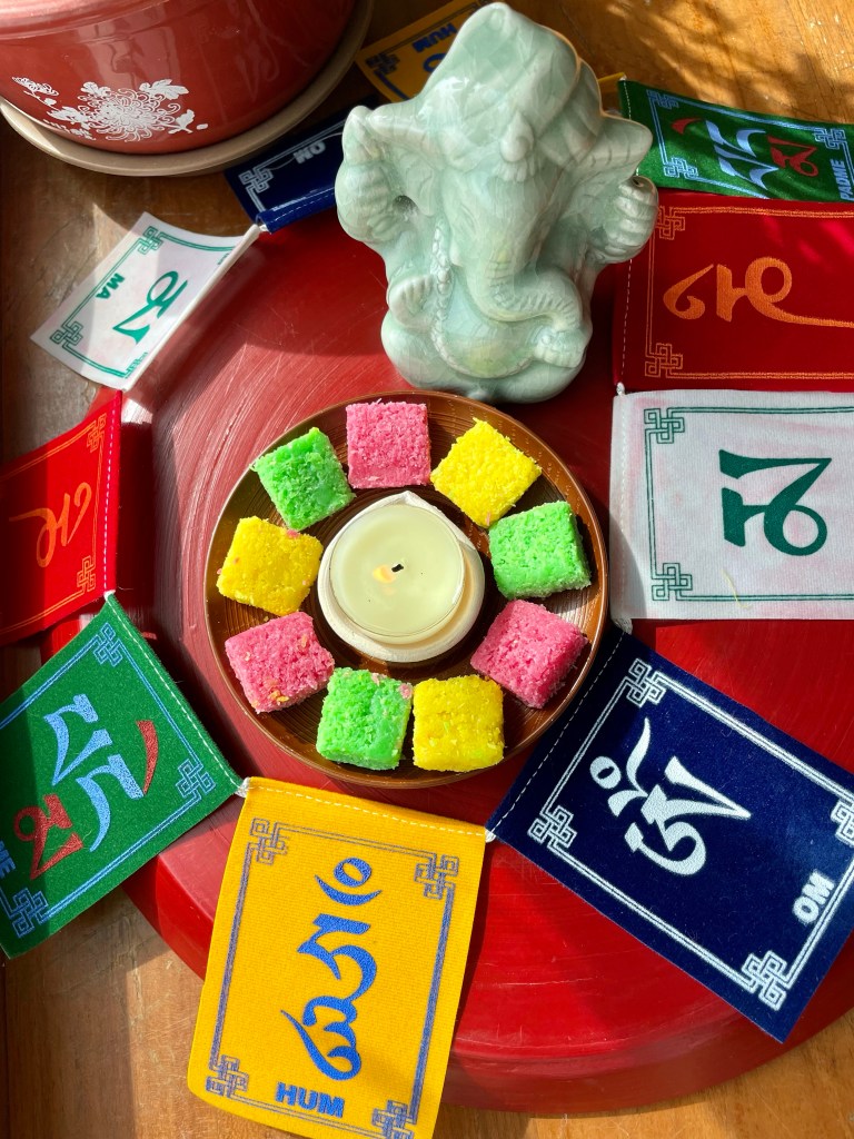 Colorful coconut candy for Ganesha, the Lord of New Beginnings, to usher in a year of Sweetness, Wisdom and Resourcefulness for all sentient beings.