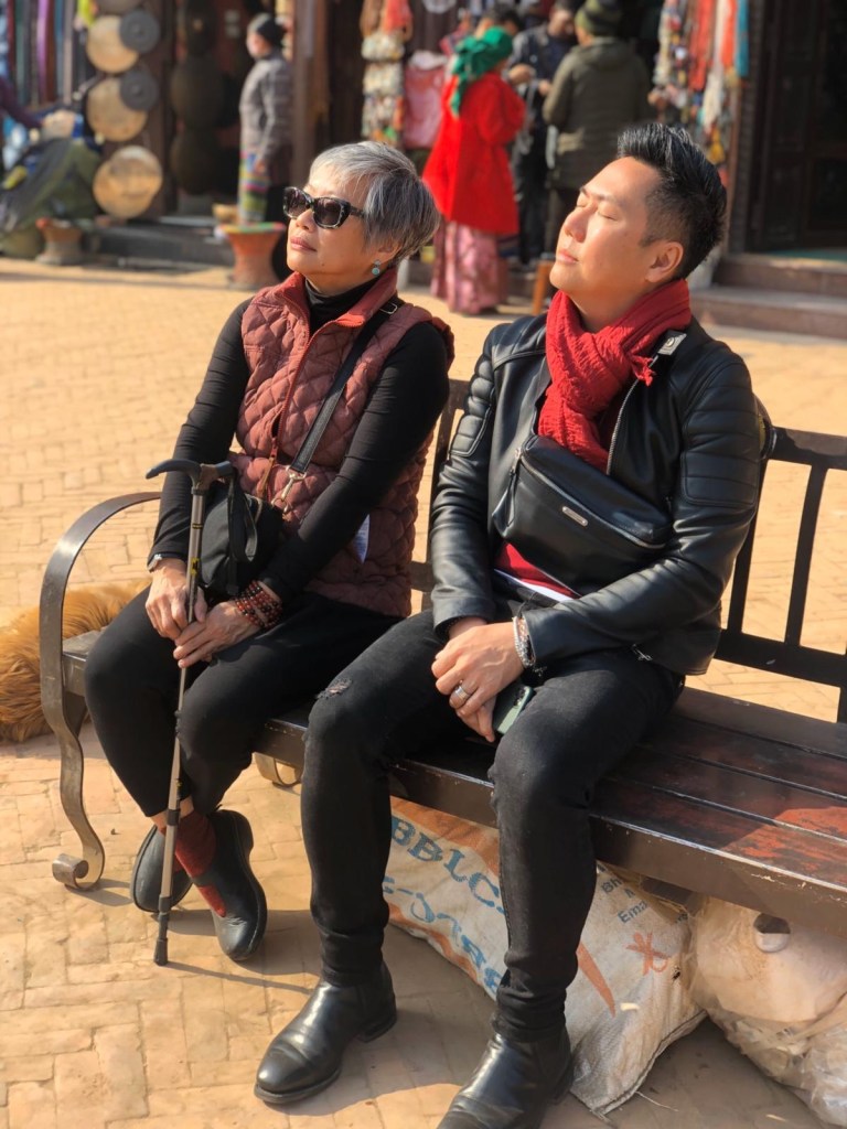 I was sitting on one of the benches facing the Boudha Stupa when 3 old persons with rickety gait came by.