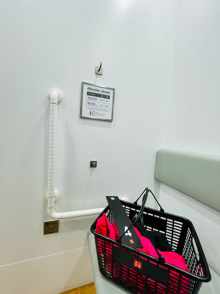 But the Uniqlo Angel would not back off. He took one look at my leg & cane, and decided that I would need a cubicle for the disabled to try on my clothes.