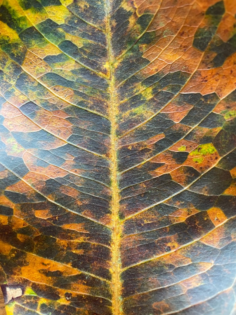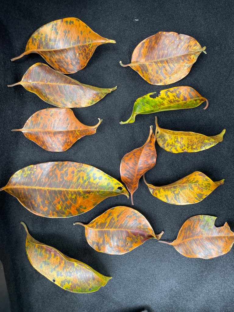 We bowed to the tie dye combo of emerald green, glorious gold, fiery copper and chrome yellow as we bent low to pick one leaf after another.