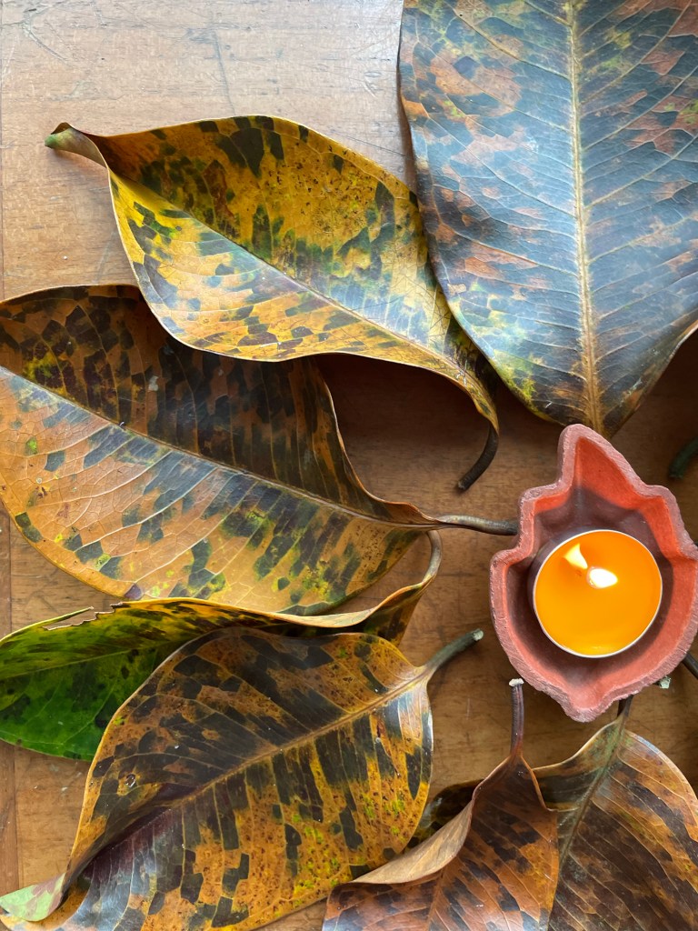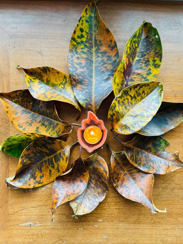 I told my brother that I would make a mandala out of these leaves that have been bathed by moonlight for the New Moon tonight.