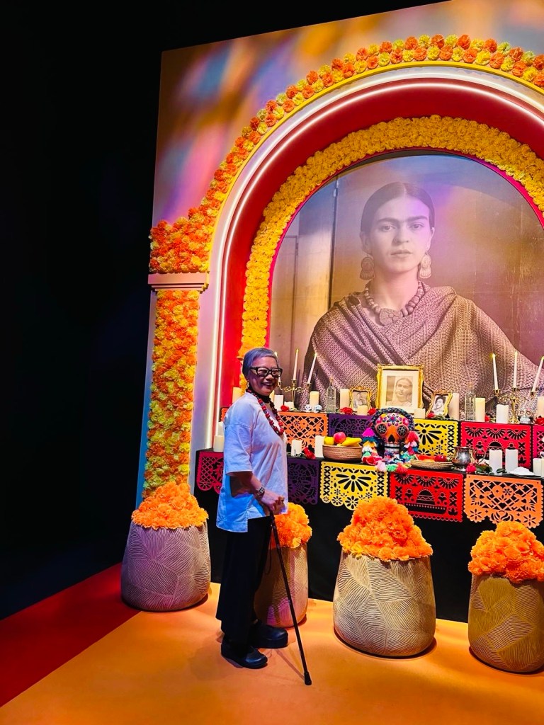 At the lotus shaped Art Science Museum, my 2 companions in their Sweet Seventies put me on a wheel chair and rolled me around to see Frida’s life. 😄🙏