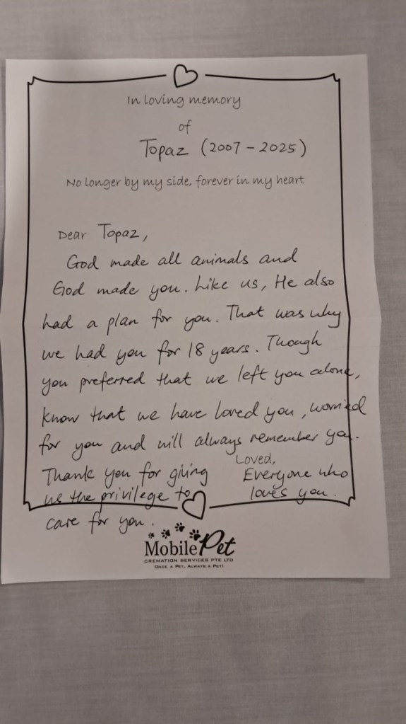Finally an abundant life is not just about length, but also about love. And I think Topaz has both. ♥️🙏