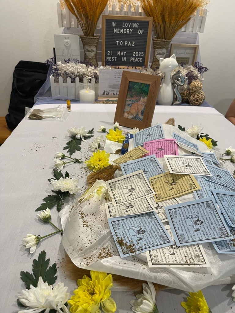 After he had breathed his last, Topaz was carefully brushed, blessed & wrapped in cloths bearing auspicious symbols.