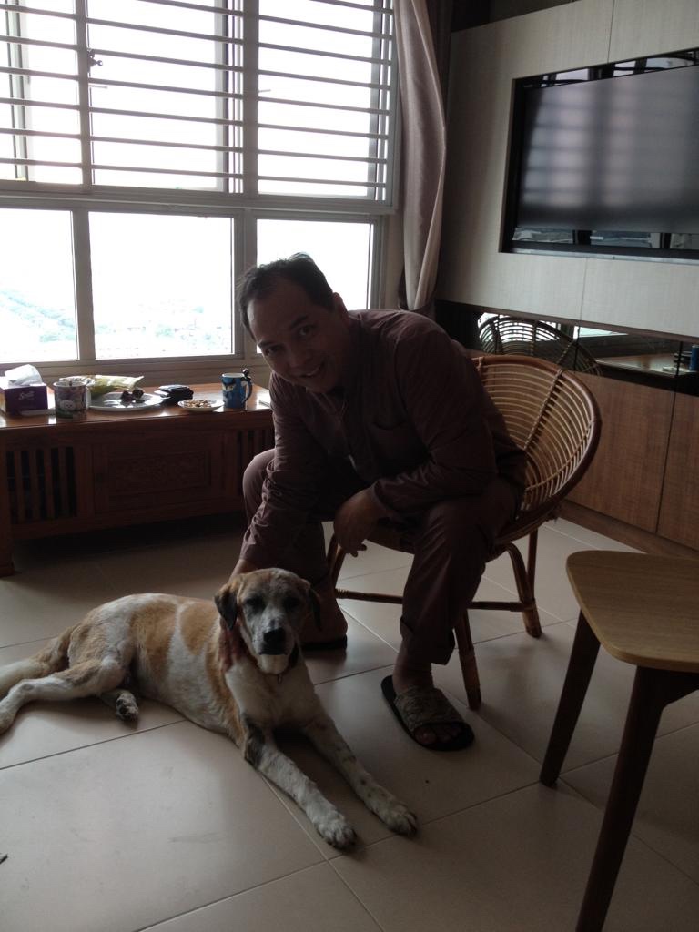 My friend brought her adopted dog to my home for Chinese New Year visit today.