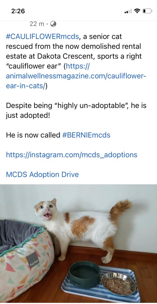 And as if to signify a departure from his past afflictions, Cauliflower Boy’s adopter has changed his name to Bernie. ❤️