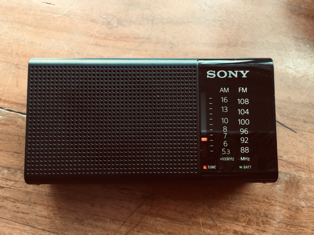 With this battery operated radio, there’s no wifi to look for, no password to recall and no say in what tracks I get to hear.