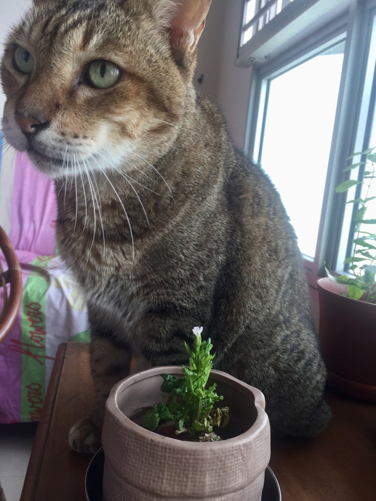 He couldn’t believe his aging feline eyes and had to look at the little pot several