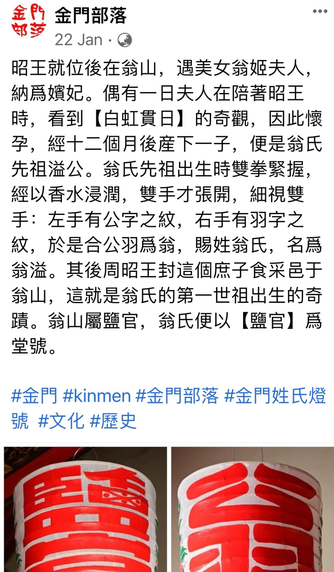 On the same day as I gave thanks for my birth, I was happy to see a Facebook feed from Kinmen Blog explaining the origin of my grandmother’s surname, 翁 (pronounced as “weng.”)