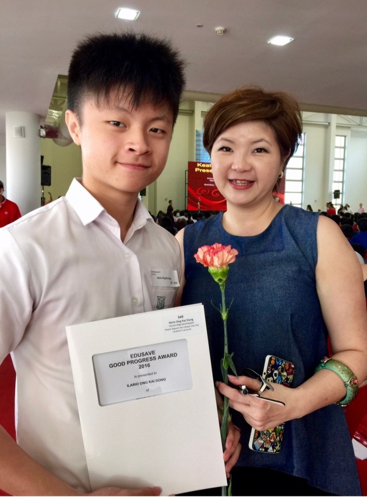 Edusave Award with dad Showing gratitude to mom at Edusave Award.